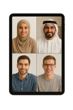 غرفة محادثة مفتوحة 24 ساعة. لا قيود، لا مواعيد — مارس الإنجليزية في أي وقت.